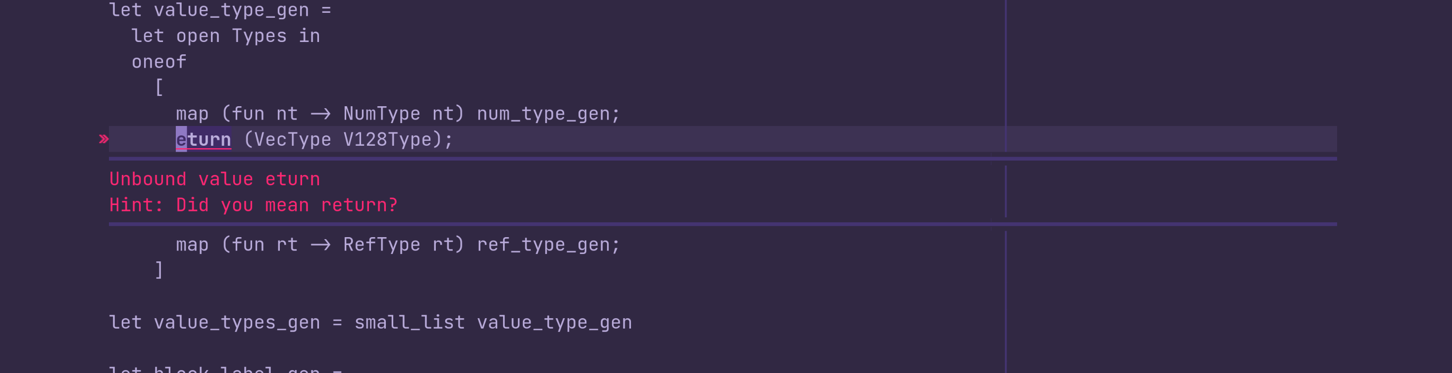 #flycheck-inline in action with an OCaml compilation error.