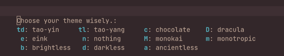 A Hydra menu for selecting a theme.